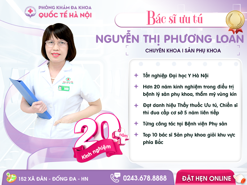 ThS.BS Phụ Sản Nguyễn Thị Phương Loan: Nguyên Phó Giám Đốc Trung tâm sức khỏe sinh sản thành phố. Với hơn 20 năm công tác, bác sĩ vững chuyên môn, giàu kinh nghiệm trong tư vấn, khám chữa các bệnh lý phụ khoa với tỷ lệ điều trị thành công cao.