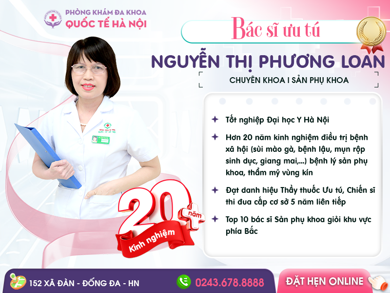 Bác sĩ Ưu tú Nguyễn Thị Phương Loan: Chuyên khoa Phụ sản, Nguyên Phó Giám Đốc Trung tâm chăm sóc sức khỏe sinh sản thành phổ với trên 20 năm kinh nghiệm. Bác sĩ được nhiều bệnh nhân đánh giá cao nhờ phong cách làm việc chuyên nghiệp, tận tâm, luôn đồng hành cùng người bệnh trong suốt quá trình điều trị.