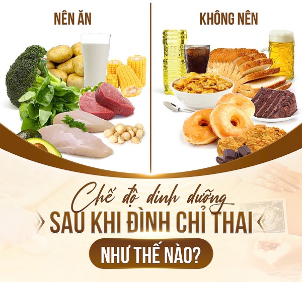 sau phá thai cơ thể thai phụ mất đi một lượng máu đáng kể. Vì vậy bạn cần bổ sung thực phẩm giàu sắt, protein và vitamin như thịt đỏ, cá, trứng, rau xanh đậm, các loại hạt và hoa quả tươi. Uống đủ nước để giúp cơ thể thải độc và phục hồi nhanh hơn.