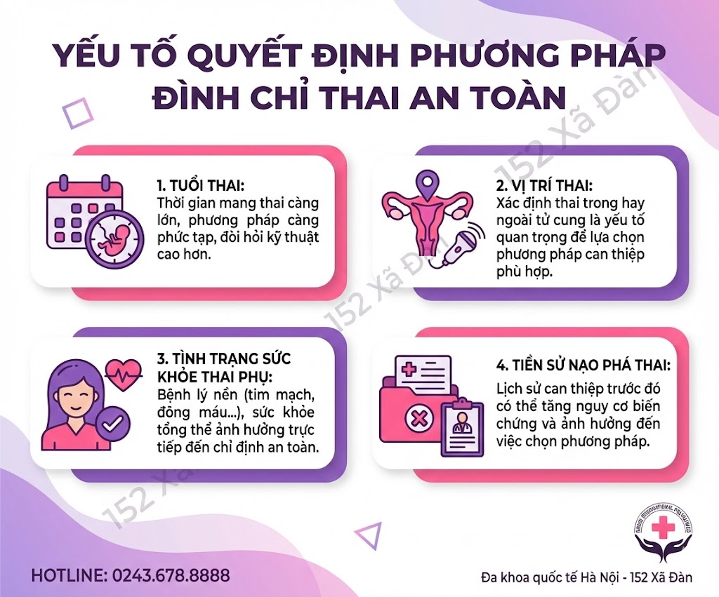 Bởi vì mỗi phương pháp đình chỉ thai chỉ an toàn trong một giới hạn nhất định, phụ thuộc vào: