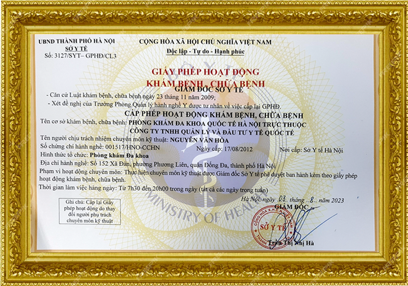 Đa khoa Quốc Tế Hà Nội là một trong số ít những cơ sở y tế uy tín, được cấp giấy phép hoạt động hợp pháp của Sở Y Tế và là top phòng khám hàng đầu Hà Nội nhận được đánh giá cao trong lĩnh vực chăm sóc sức khỏe sinh sản. Tất cả các chi phí đều được niêm yết theo bảng giá quy định và được công khai, minh bạch.