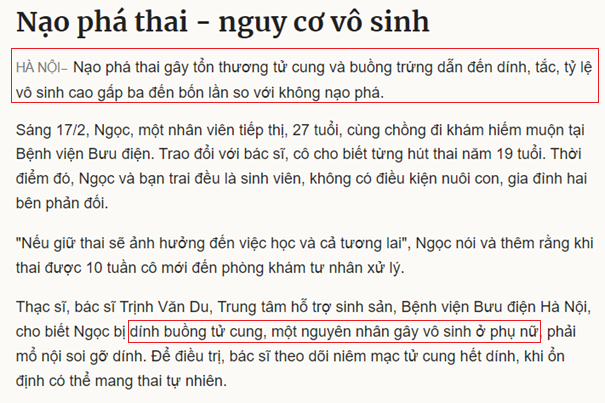 Phá thai to – Mối liên hệ mật thiết với nguy cơ vô sinh, hiếm muộn ở nữ giới