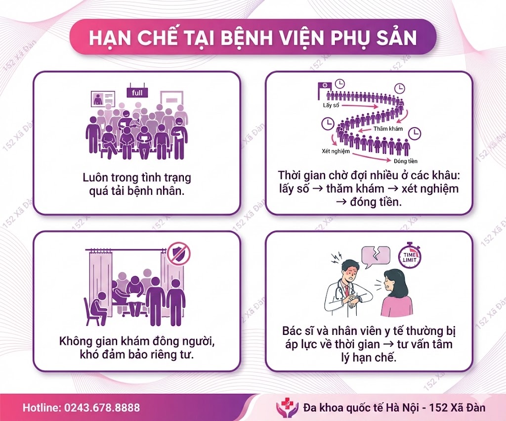 - Không gian khám đông người, khó đảm bảo riêng tư